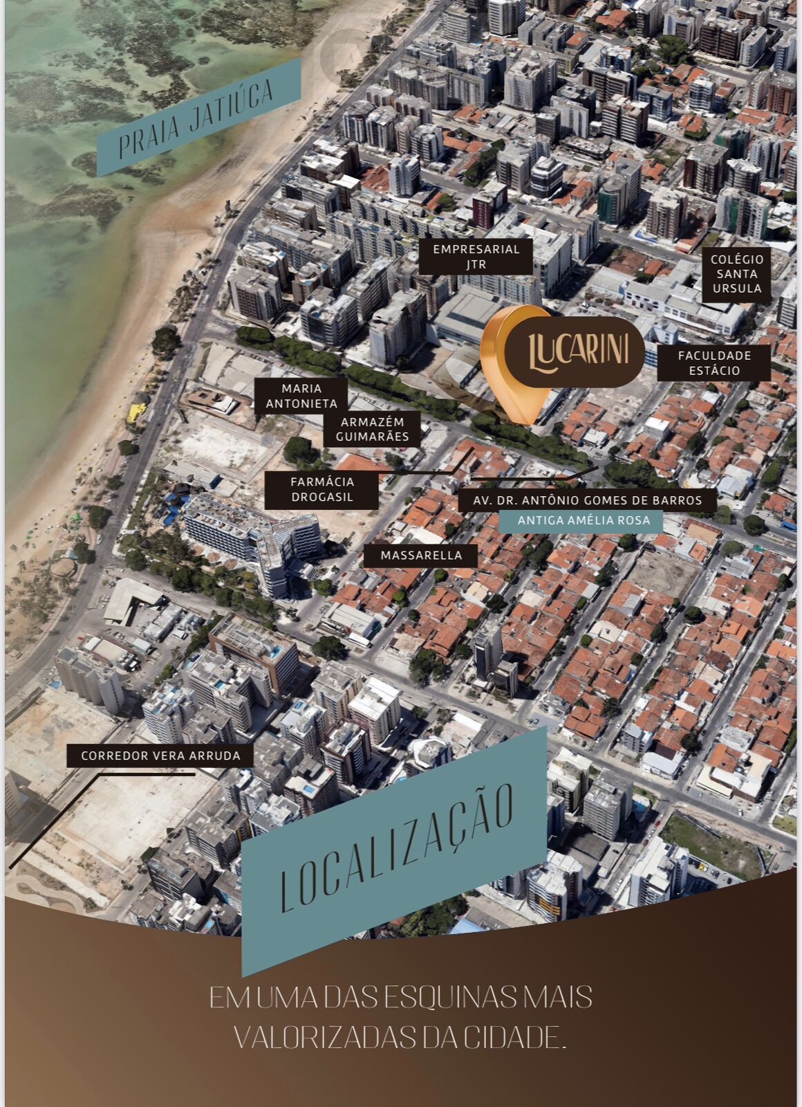 Lançamento imperdível na segunda quadra da praia de Jatiúca e em uma das esquinas mais valorizadas da cidade, Edifício Lucarini, apartamento com 1 ou 2 quartos de 39 a 66 m², para investir com segurança, inovador, cosmopolita e antenado e ótima rentabilidade, com toda estrutura de lazer na cobertura e serviços no térreo, inclusive com geração de energia, com placas fotovoltaicas para áreas comuns e aquecimento da piscina.