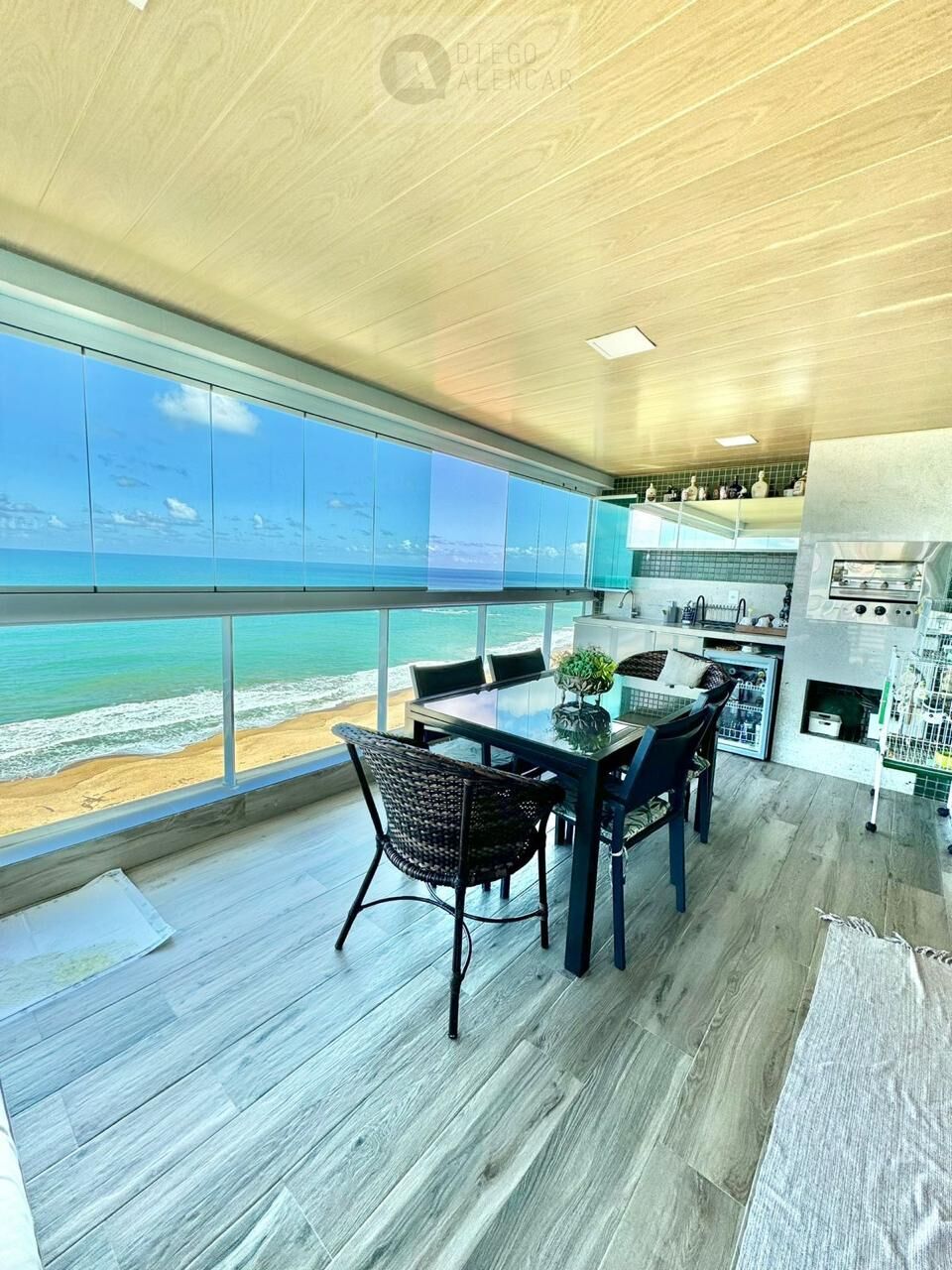 Conta com uma varanda gourmet com churrasqueira, 4 vagas de garagem e uma área de lazer completa, que inclui várias piscinas, academias, loja de conveniência, quadras de beach tênis, espaço pet e gazebo na praia.