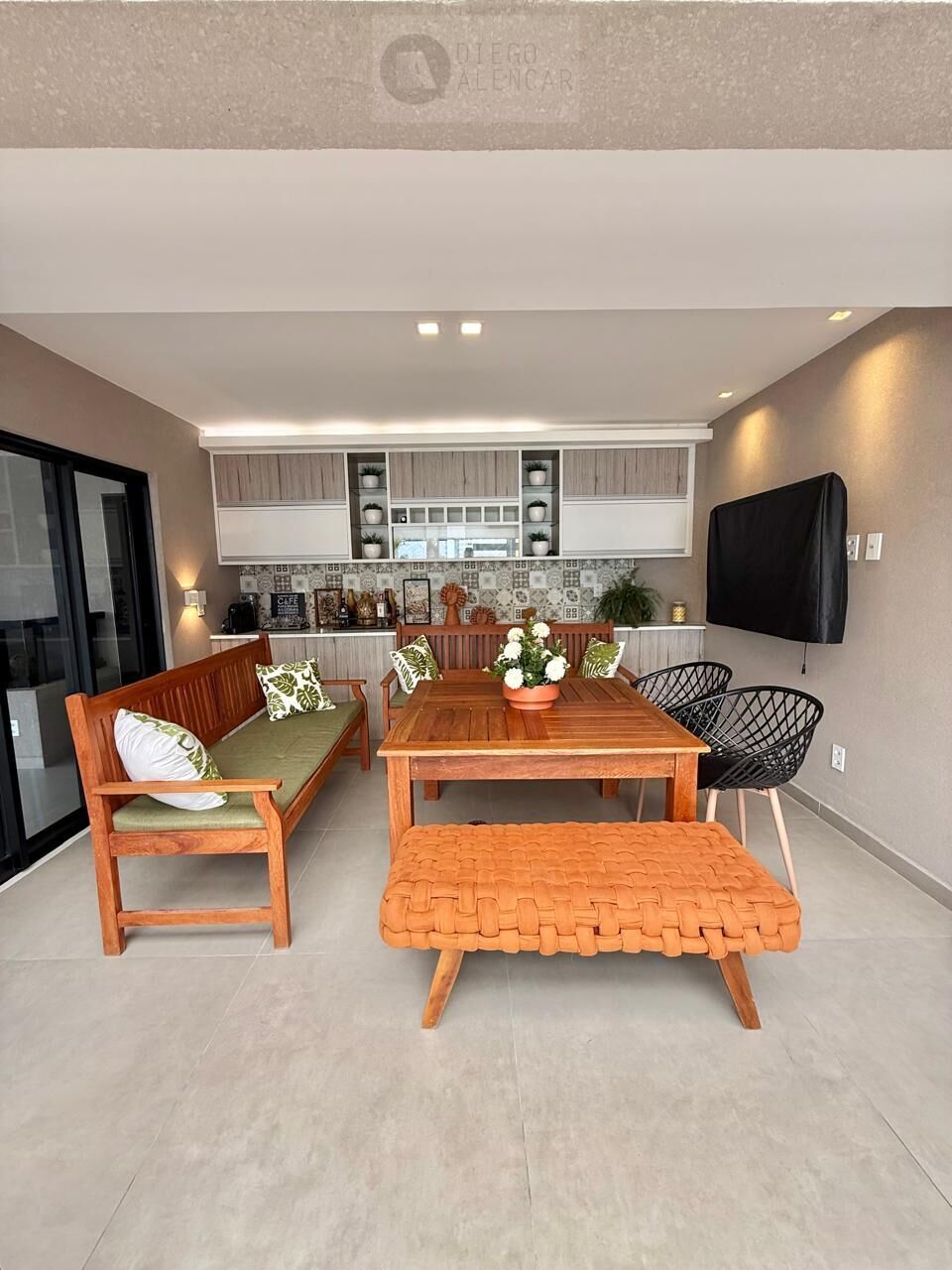 Permanecem no imóvel os móveis fixos e três aparelhos de ar-condicionado de caixa nos quartos, não estando inclusos o ar-condicionado da sala, cortinas, móveis da área externa e demais itens soltos. O condomínio dispõe de piscina, salão de festas e playground, oferecendo conforto e opções de lazer.