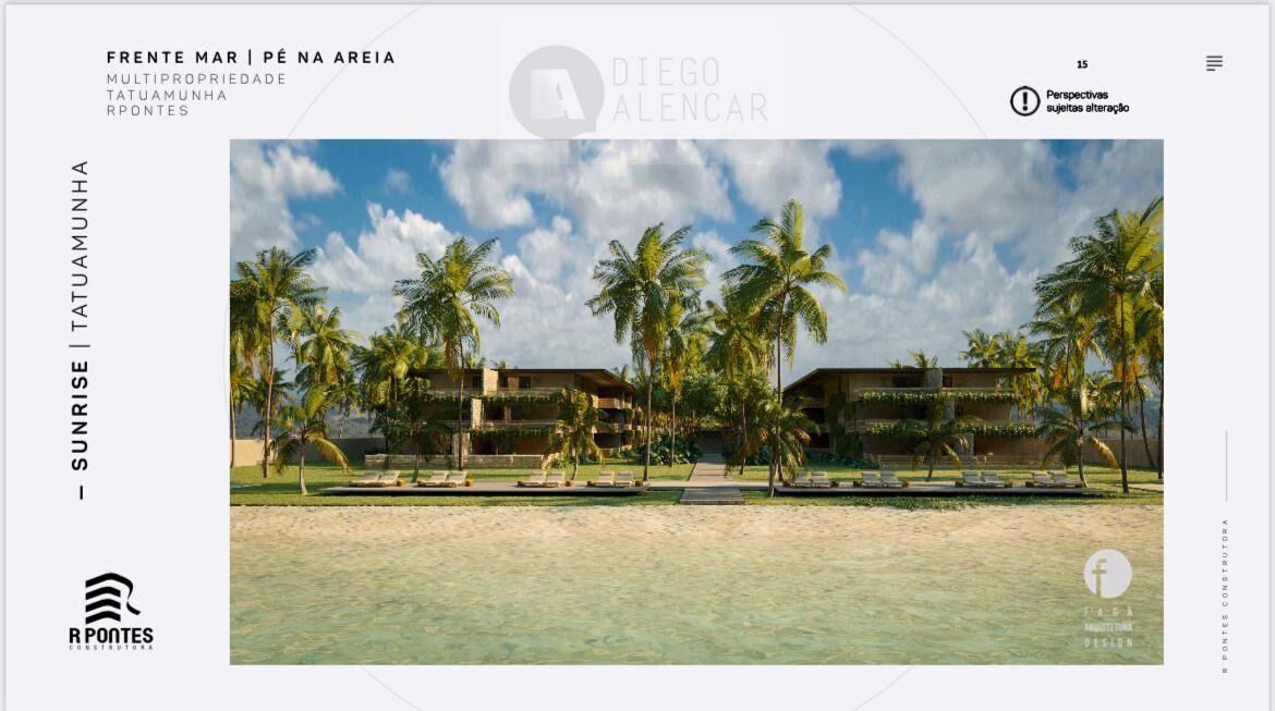 Nesse paraíso está localizado o Sunrise, beira mar com acesso exclusivo e direto a praia, podendo escolher seu investimento: studio com varanda integrada, 02 quartos com varandão, 03 quartos com piscina ou 04 quartos com piscina.