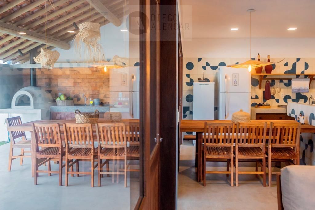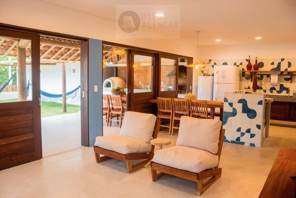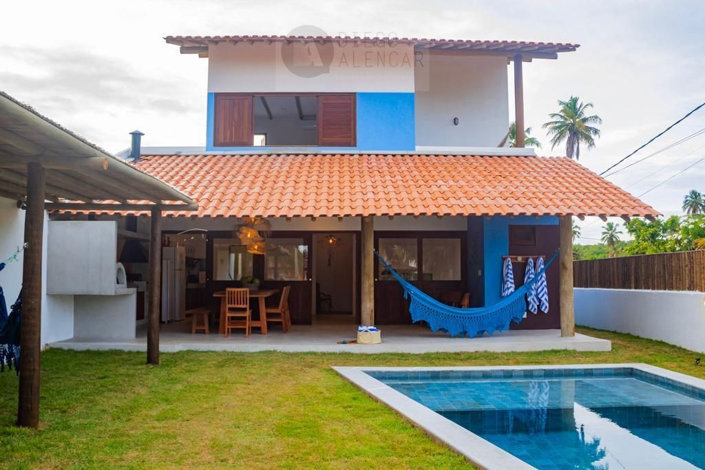 A casa é totalmente equipada com smart TV, geladeira, fogão, micro-ondas, bebedouro, utensílios de cozinha, churrasqueira, cadeiras de praia, guarda-sol, cooler e enxoval completo. Comporta até nove pessoas e oferece vista para o mar, a apenas 90 metros da praia.